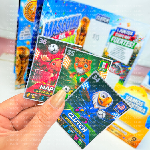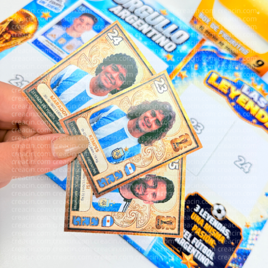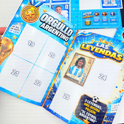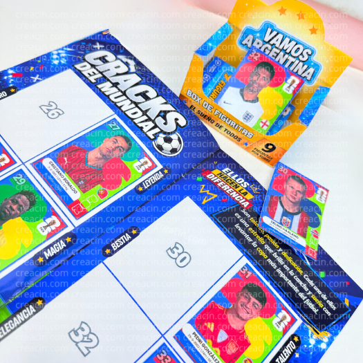 Esta es una novedad que no vas a encontrar en ningún lado! Se incluye 3 diseños de Caja exhibidora tipo display (armable) para guardar y exhibir los sobres de las figus. Se arma y se exhibe o se desarma y queda como una caja para llevar las figus.